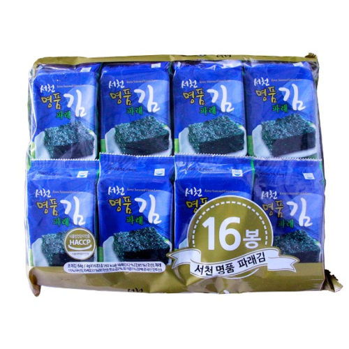 파래김62%[김85%(국산), 파래15%(국산)], 옥배유31%(외국산), 맛소금2%, 참기름5%(참깨:중국산, 인도산)